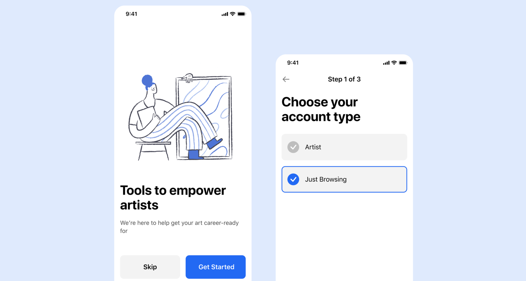 UI illustration set for online art platform for artists and sellers - digital tool, that allows to share and buy art for private collections.