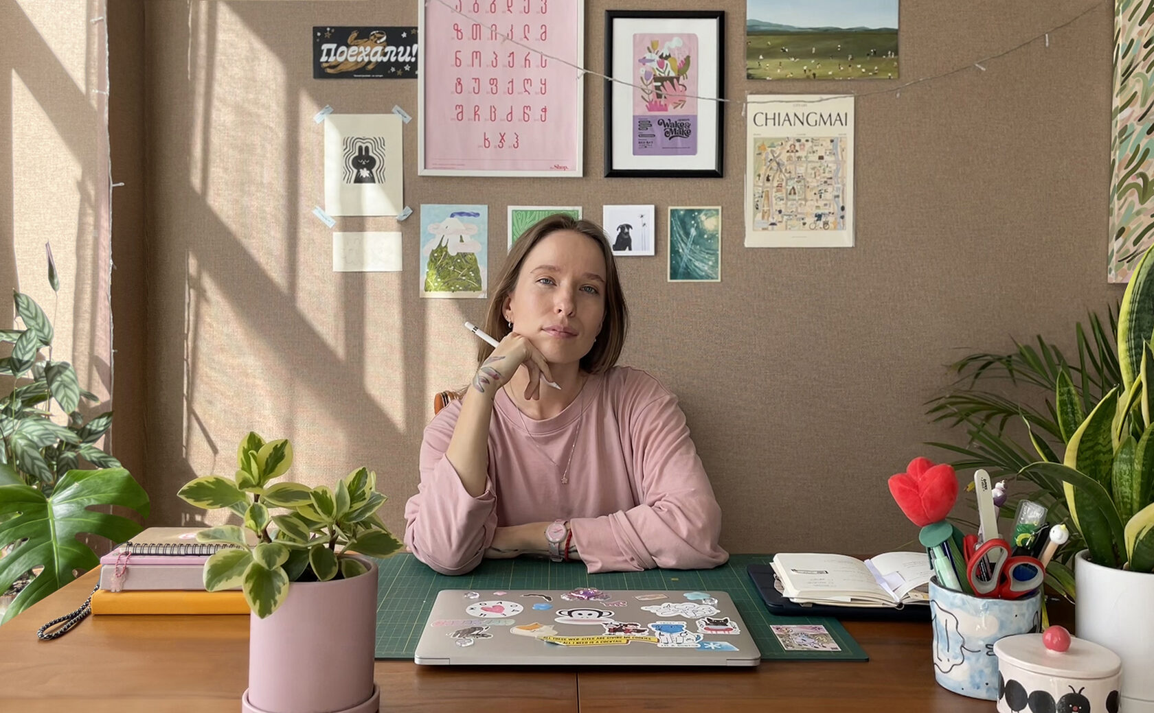 Hi! I am a Siberian multidisciplinary artist who lives in Georgia for the last three+ years. Having a degree in Art&Design ('2016), I continue to explore different digital and analog mediums to create my designs. My inspiration is drawn from the natural world, simple forms, cute things, and minimalistic culture. I'm centering my practice on the studies of color and shapes that broadcast a positive vibe and sense of peace & joy while serving my clients' businesses.